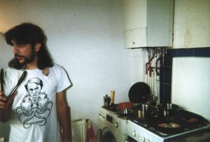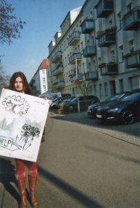 Having arrived at Sina’s place, I go straight to his living room to pack my suitcase. I throw all of my stuff in there, then grab the roll of tape I’ve brought with me from home. I hear Sina turn on his radio in the kitchen and open his fridge. I check my phone. No notifications. “If none of my friends answer, I’ll just go back to Leipzig when the first train leaves in the morning”, I think to myself as I take out the tampon Tupperware box from my bag. “Cookie, come to me, let’s make peace”, Sina yells at me from his kitchen. “Fuck off Sina, no peacemaking tonight. Just leave me alone to sort out my stuff”, I yell back, and fetch out my disposable camera from my bag. With the camera, the Tupperware box, and the tape in my hands, I look around Sina’s living room. His paintings are everywhere: On the walls, on the floor, on the couch, in the window frames.